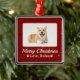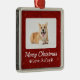 Minimal Red Glitter Pet Photo Merry Christmas Metal Ornament