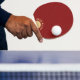 Minimal Red Leather Texture Gold Accent Monogram Ping Pong Paddle