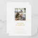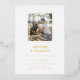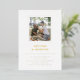 Modern gold and white informal wedding invitation with a photo and gold foil details.