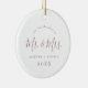 This minimal rose gold first Christmas wedding photo ceramic ornament is the perfect simple Christmas tree decoration. The design features classic blush pink and white typography paired with a rustic yet elegant script font with hand lettered style. This keepsake ornament reads "our first Christmas as mr and mrs". Personalize the front with your names and the year. Personalize the back with your favorite wedding photo.