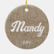 Minimal Rustic Farmhouse Burlap Personalised Ceramic Ornament