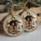 Embrace the charm of rustic elegance with our minimal faux burlap textured ornament. This beautifully designed ornament features a realistic burlap texture frame, adding a touch of warmth and simplicity to your holiday décor. Personalise this ornament with a photo on the front and back along with a name displayed prominently over the photo, written in a bright white, beautiful script-style font. The minimalistic design ensures that the ornament seamlessly fits into any rustic or farmhouse-themed décor, making it a versatile and cherished addition. Whether you are looking to adorn your own Christmas tree or searching for a thoughtful gift, this personalised faux burlap photo ornament is the perfect choice. Its timeless design and high-quality craftsmanship make it a keepsake to be treasured for years to come. Designed by Moodthology Papery