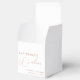 Modern and minimal script calligraphy in rustic terracotta wedding favour box.