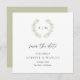 Announce your special day in style with this sophisticated "Save the Date" card featuring a minimal greenery wreath & monogram design.