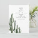 This save the date invitation features watercolor saguaro cacti and a modern, minimalist design. Easily edit all wording to meet the needs of your event.