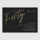 Modern minimalist 40th birthday party invitation features stylish faux gold foil number handwritten script Forty and your party details in classic serif font on black background colour, simple and elegant, great surprise adult milestone birthday invitation for men and women. the black background colour can be changed to any colour of your choice.