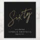 Modern minimalist 60th birthday party invitation features stylish faux gold foil number handwritten script Sixty and your party details in classic serif font on black background color, simple and elegant, great surprise adult milestone birthday invitation for men and women. the black background color can be changed to any color of your choice.