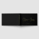 This minimal and elegant black wedding guest book features your choice of real gold, silver or rose gold foil, your names in a chic modern script, and your wedding date and location in classic serif typography. You can personalise the title on the spine.