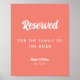 Minimal Script Coral Pink Wedding Reserved Sign. Customise with bride and groom names, custom wording, and your wedding date. You can also change fonts, colours, etc., by clicking on "personalise this template," then "edit using design tool." Please message the designer if you wish to have changes done for you.