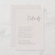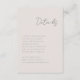 3.5x5 minimal script, details enclosure card. Dark grey text on a light beige background. Part of a wedding collection.