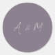 Minimalist Script Monogram Trendy Chic Typography Wedding Classic Round Sticker in Boho Dusty Purple