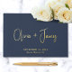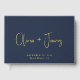 This minimal and elegant dark navy blue wedding guest book features your choice of real gold, silver or rose gold foil, your names in a chic modern script, and your wedding date and location in classic serif typography. You can personalise the title on the spine and add your favourite photo on the back.