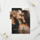 A romantic, simple vertical wedding photo save the date featuring beautiful script calligraphy overlay on the front. The back has a two photo collage with wedding website. Click the edit button to customise this design.