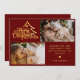 Minimal Script Two Photo Red Merry Christmas Holiday Card