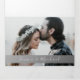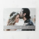 Simple, elegant, modern calligraphy script silver-grey black and white wedding invitation, with picture of the couple at the front side.