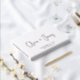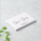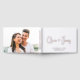 This minimal and elegant white wedding guest book features your choice of real gold, silver or rose gold foil, your first names in a chic modern script, your wedding date and location in classic serif typography and your personalised title on the spine.