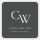 Minimal Simple Black & White Monogram Initial Square Sticker