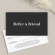 Simple black and white referral card for beauty related professionals. Elegant fully customisable template.