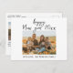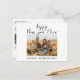 Minimal Simple Happy New Year Script Family Photo Holiday Postcard. Black script on white. Add your photos and your text on the front and on the backside and make a trendy and chic New year postcard.