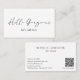 Modern black and white typographic business card featuring a simple and minimal design with "Hello Gorgeous" in an elegant script typography along with your personalised message. The back has your contact info and optional QR Code. You may remove the QR Code and change the colours of the fonts and background in the design editing tool.