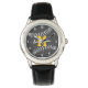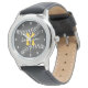 This personalised baseball watch features a minimalist style baseball graphic (showing only the baseball's stitches in white) on a customisable dark grey background with white clock face numerals - customise with player or fan name and monogram - monogram is gold but choose any colour - by katz_d_zynes