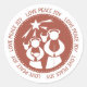 Minimal terracotta Nativity Scene Love, Peace and Joy Christmas sticker. The focus of this design is a minimal Nativity Scene in white on terracotta scalloped background. Around it there is the phrase "Love, Peace, Joy".