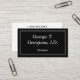This traditional and minimal business card design features a black background, and a double-line border with a dashed line in between. It could be used by a professional barrister, lawyer, paralegal or attorney-at-law. The name, profession and contact details can be personalised.