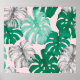 Monstera leaves create a trendy duo-toned tropical pattern in turquoise and pink.