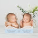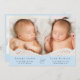Minimal pastel blue twin boys photo birth announcement featuring their photo, names, arrival dates and birth stats in simple, modern typography. On the reverse side, add three additional photos and your "welcomed by" message.