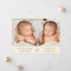 Minimal pastel yellow boy or girl twins photo collage birth announcement. The front features their photo, names, arrival dates and birth stats in simple, modern typography. On the reverse side, add 3 additional photos and your message.