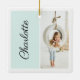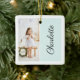 Minimal Two Photo Customised Name Mint Green Ceramic Ornament