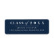A simple, clean graduation return address label featuring large class of and graduation year type. Click the edit button to change the background colour and input your personal information.