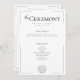 Sleek, sophisticated, and effortlessly elegant — this modern wedding program ceremony card is perfect for the couple who loves timeless design with a contemporary twist. Featuring crisp charcoal black text on a clean white background, the layout is framed by a thin openwork border that adds just the right touch of detail. The couple's first names take centre stage, drawing the eye before guiding guests to the event details in a minimalist modern font. A simple line art seashell adds a touch of coastal charm. Created by Simply Farmhouse Press.