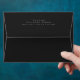 Sleek, sophisticated, and effortlessly elegant — this modern wedding invitation envelope is perfect for the couple who loves timeless design with a contemporary twist. Featuring crisp white text on a clean charcoal black background, the layout is framed by a thin openwork border that adds just the right touch of detail. Created by Simply Farmhouse Press.