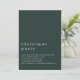 Minimal TypographyChristmas Party Dark Green. Simple minimal elegance with this fully customisable design. The header is larger in stylish lowercase with the details beneath. Easily personalise the text and can be changed to any colours of your choice via the customise further option.