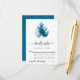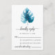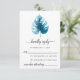 Modern RSVP card design featuring watercolor monstera leaf illustration on a simple white background. Reverse side of the invitation is in deep blue colour.