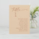 A wedding seating chart card designed to clearly organize guest placement while keeping the layout simple and easy to follow. The design highlights the table number and arranges guest names in a clean vertical list, making it quick to scan without visual clutter. This helps guests find their seats without confusion, especially during busy reception moments. A flowing script heading paired with a simple text creates a balanced look that feels modern. The peach sand background adds a warm, muted tone that blends naturally with neutral wedding palettes and understated decor. A practical and cohesive choice for weddings that focus on clarity, structure, and a minimal aesthetic. Available as both a printed card and a digital download.