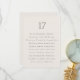 Elegant minimalist wedding table number card featuring a refined neutral ivory background and a clean guest list layout. This sophisticated seating card design displays a large table number with a list of guest names below, making it perfect for organising reception seating arrangements.