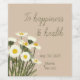 Simple and minimal design of a bunch of white daisy flowers with green leaves on a beige background. The placement of the floral design creates the space so that the text catches the eye, and is easy to read.