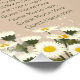 Simple and minimal design of a bunch of white daisy flowers with green leaves on a beige background. The placement of the floral design creates the space so that the text catches the eye, and is easy to read.