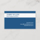 Modern minimal design features a white stripe across the top third of a blue background. Your name appears in a dark blue sans serif font on the left side of the stripe. Your job title or speciality appears in white italics text on the lower right. The back repeats the white stripe with your name and company/title in blue and your contact info in white at the lower right. Easily add your name, job title/speciality/company, website, and contact information in the sidebar. Perfect for an interior designer, consultant, event planner, and other professions.