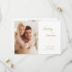 This save the date card showcases a modern minimalist design and is accented with simple gold handwritten calligraphy text. The card offers 2 photos, one on the front and a second on the back. Custom text on the back allows you to add more wedding details.
