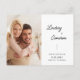 This save the date postcard features a modern minimalist design and is accented with simple handwritten calligraphy text. The black and white postcard offers 2 photos, one on the front and a second on the back. Custom text on the back allows you to add more wedding details.