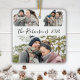 Minimalist 3 Couple Photo Collage Christmas Ceramic Ornament