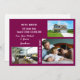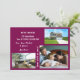Minimalist, elegant, trendy moving announcement card with 3 custom photos, the names of family members, and the texts "We've Moved!" and "Come visit us soon!" + the new address and landline phone number on the front for you to personalise. Modern, chic wine red background with white writing.