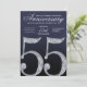 This modern anniversary invitation card showcases a striking diamond-style number fifty-five set against a deep navy blue background with refined silver accents. The faceted crystal detailing adds contemporary sparkle, while clean composition, smooth gradients, and subtle light textures create a polished and elegant look. The modern navy and silver color palette delivers a formal, luxurious feel, making this invitation ideal for hosting a stylish and memorable 55th anniversary celebration.