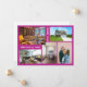 Minimalist, elegant, trendy moving announcement card with 5 custom photos and the texts "We've Moved!" & "Come visit us soon!" on the front + the new address, "Please call first," phone numbers, and names on the back for you to personalise. Modern, chic plum pink background with white writing on the front.