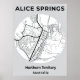 Designed in a minimalist white - black - grey palette, this artwork highlights the streets and layout of Alice Springs, Australia in a clean, contemporary style.