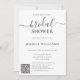 The invitation features a clean white background with black lettering in a sophisticated and stylish font. The bride's name is highlighted in a larger script font, making it the centerpiece of the invitation. The overall design is tasteful and refined, perfect for a sophisticated and understated bridal shower celebration. With this invitation, you can communicate all the important details of the event while keeping the focus on the joyous occasion and the bride-to-be.