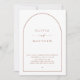 This elegant wedding invitation features a modern arched design with clean typography. The front displays the couple’s names and wedding details inside a refined arch outline, while the back includes space for a personal photo and a convenient QR code that links directly to your wedding website. Accented in deep terracotta for a warm and timeless touch, this invitation blends minimalism with personal charm - perfect for boho, rustic, autumn, fall, or modern weddings. Offered as both a printed card and a digital download, this versatile design provides the perfect balance of style and convenience.